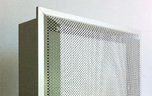 高性能フィルタを取り付けるためのユニット。空調機械で温度調節されたエアーをダクトで配管し、HEPAボックスへ導入。内部に取付けたHEPAフィルタで粒子を除去します。